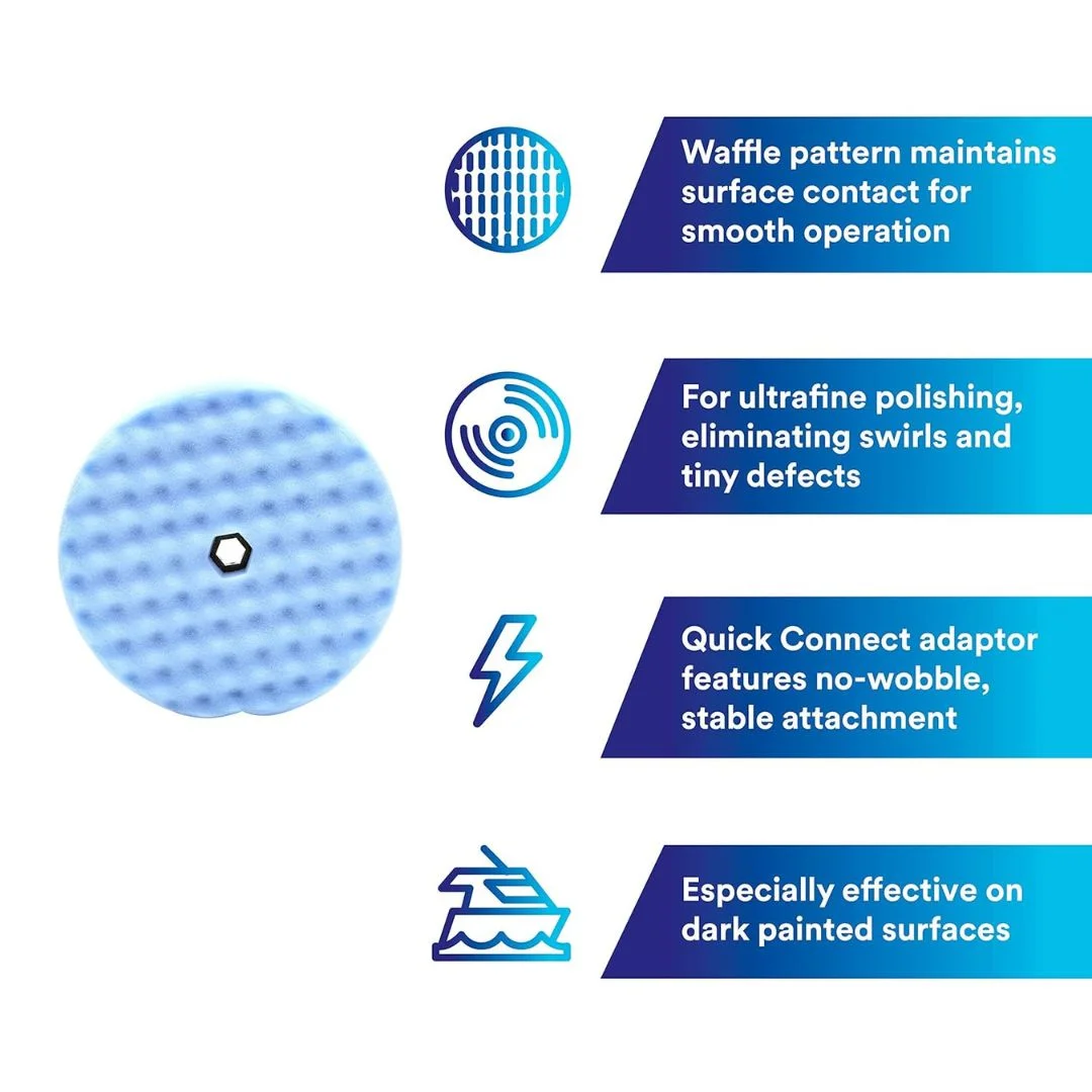 Achieve a showroom-quality finish with the 3M™ Quick Connect Double-Sided Blue Foam Polishing Pad (PN 50708). Designed for professional detailers and auto refinishers, this 216mm (8.5-inch) reversible pad features ultra-soft blue foam for ultra-fine polishing, eliminating micromarring and holograms. The Quick Connect system allows for tool-free attachment, reducing downtime between pad changes—perfect for high-volume shops and precision detailing.