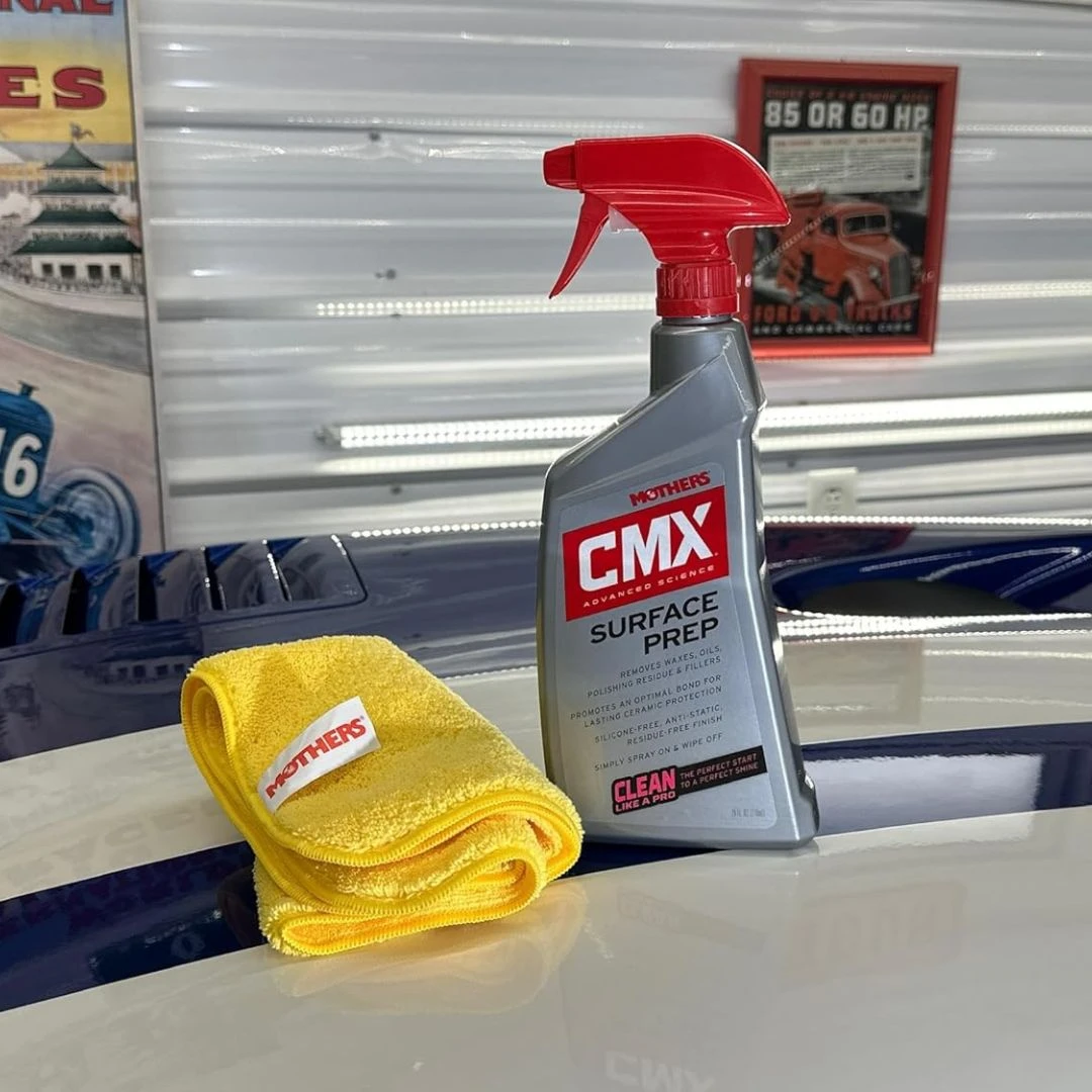 Before you ceramic coat, wax, or seal your ride, start with a pristine surface! Mother’s CMX Surface Prep Spray is a professional-grade cleaner designed to strip old wax, oils, and contaminants—ensuring maximum bonding for your ceramic coating, wax, or sealant.